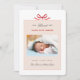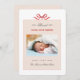 Ett bra, modernt och enkelt Flicka-kort för foto Birth-annonsering med en vattenfärgad illustration av rött båge i rosans bakgrund