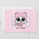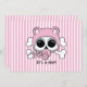 Cute flicka-skalle och korsben med rosa hatt och nappar.