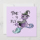 Den här söta designen har en snygg, söt lila häxkatt med frasen "Time To Fly". Det är perfekt för en Halloween firande.