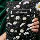Embrace classic elegance with this charming daisy pattern spiral notebook, a perfect companion for writers, students, and creative souls. Set against a sleek, midnight-black background, the design features a hand-drawn field of crisp white daisies with golden-yellow centers, creating a timeless botanical aesthetic that never goes out of style. You can easily personalize with your name or initials.