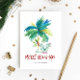 Det här strandtemat är ett julkort med handflatan träd och Santa på stranden. Ord Merry Beach-mas är placerad i en handskriven typografi. Insidan är tom för att du ska kunna lägga till personligen hälsning. Beställ utskrivna kort, bulkorder eller utskrivbart julkort. Om du vill se fler tropiska helgdagskort som detta besöker du www.zazzle.com/dotellabelle Unik konst och design av Victoria Grigaliunas från Do Berätta A Belle.