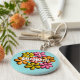 Knappen Färgblommor med personlig med bläck teckning skapat med markörer och digitalt färgad i ljusa färger namn och anpassade. Utformning av roligt med vår-anda.