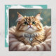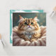 Ett sött blankt kort som skickar en anteckning till en vän. Framsidan har ett vackert bild av ett fluffy tabby katt med en diamantkolv på. Baksidan är tom med söt teal bakgrund.