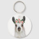 Cute Fluffy Llama med Ro Flower Krona White Nyckelring