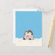 Share a touch of winter magic with this heartwarming postcard featuring a round, fluffy penguin chick sitting peacefully in a fresh snowfall. The digital illustration is rendered in a soft, painterly aesthetic, showcasing a cool and serene palette of sky blue and crisp white. Gentle snowflakes drift through the air against a brilliant blue background, highlighting the penguin's sweet rosy cheeks and cozy downy texture. This piece radiates a peaceful and whimsical seasonal vibe, perfect for any nature lover. This postcard serves as a beautiful canvas for a heartfelt handwritten message or a serene mini-print to accent your workspace gallery wall. Whether it’s traveling through the mail to a loved one or pinned to your inspiration board, it brings a touch of calm to any setting.