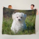 Cute Fluffy White Malta Puppy Hund Fleecefilt