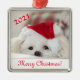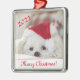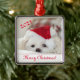 Cute Fluffy White Maltese Puppy Hund i Santa Hat Square Metall Ornament God jul - Personlig