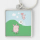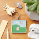 Cute Flyter Gris och säger hej Fyrkantig Silverfärgad Nyckelring