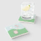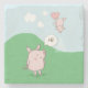 Ett sött gris tittar upp vid ett gris hovrande i himlar med en hjärtballong. Skicka en plocka till någon som kan känna sig nere eller är sjuk. Enkel bakgrund i mönster i himlar och gräs med grisar lägger lite stollig till detta hej presentobjekt.