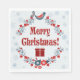Söta folkkonsfåglar och blommor: röd och blå andedräkt med bakgrunden till snöflingor och God jul.