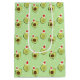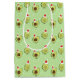Roligt avokado julklapp med mönster av leende avokado-tecknader med tomthattar på gröntens bakgrund. Den Pappra matkonsten, matkonst | ©Melissa Patton - Artist/Illustrator
