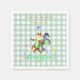 Cute Forest Foxes Dancing Charleston Pastel Grönt Gingham 1st Birthday Party Napkins.