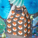 Röda foxfoxlådor med mönster i ansikte av tecknad räv mot brun bakgrund. Utformning av jute efter djur - förmånslåda | ©Melissa Patton - Artist/Illustrator