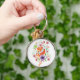 Cute Fox Baby Art Animal med Blommigt Rund Silverfärgad Nyckelring