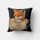 Cute Fox Drinking Tea Throw Pillow