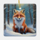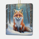 Cute Fox i Snö täckte skog Julgransprydnad Keramik
