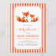 Cute Fox Mama and Baby Shower Animals Red Stripes Inbjudningar