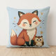 Cute Fox och Uggla Whimsical Woodland Illustration Kudde