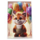 Cute fox omgiven av färgstarka ballonger.