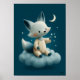 A sweet and calming nursery illustration of a cute fox sitting on a soft cloud under the moon and stars. This gentle bedtime artwork creates a peaceful atmosphere, making it perfect wall art for baby rooms, nurseries and children’s spaces designed for rest, dreams and imagination.
