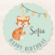 Ungefär på ditt barns födelsedagsfest gynnas med dessa dekorationer i party med en pastellillustration med en söt räv som bär en party hatt på en rosa för ett skogstema.
