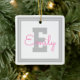 Cute Framed Namn & Monogram | Ljust Grått och Rosa Julgransprydnad Keramik