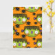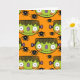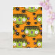 En söt Halloween-bild med en tecknad Frankenstein (grönt, naturligt!) på orangens bakgrund, med hans lilla suddiga, svarta spindelvän. Idealisk för barn.
