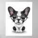 Cute Fransk Bulldog Puppy med glasögon, vit Poster