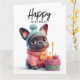 Cute Fransk bulldog, rosa klänning, födelsedagskal Kort
