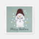Den här mycket söta julnapkin har ett sött sött snögubbe som njuter av snö. Texten "God jul" är inställd i ett trendig och ett skript med uppspelning.