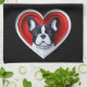 Cute French Bulldog Frenchie in Red Heart Kökshandduk