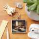 Bring a touch of charm and relaxation wherever you go with this cute French Bulldog keychain. Featuring a Frenchie sprawled out on a cosy rug, nose deep in a good book, this design perfectly captures the joy of lazy afternoons and quiet moments at home. The warm, inviting living area background adds to the comfort and whimsy of the scene.