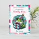 Cute-födelsedagsinbjudningar för en liten flickas födelsedag. En vacker groda på en födelsedagshatt som håller en gåva med en söt polka punktbakgrund i rosa och teal. Lägg till din födelsedagsfests information i området Anpassa.