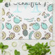 Kökshandduk med en söt mönster linje teckning stil. Ljust grönt och gult färg. En sammanfattande roligt. En vit cirkel som läggs ovanpå med ditt namn och som initialt innehåller ett monogram.