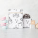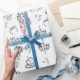 Cute Funky Whimsical Hand plockade Bröllop Wrapping Papper - Backa en gåva för bruden att vara i denna söta, vismliga, pappra inslagning av hand plockade bröllop. Med hand plockade illustrationer av romantiska bröllop-ikoner som dansbrud och stam, ett par svanar, en bröllop-kaka, en finare-chandelier och hjärtan. I elegant svart och vitt koordineras den med valfritt tema för möhippa. Perfekt även för möhippor!