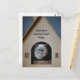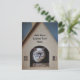 Vykortsbilden av en katt med svarta glasögon tittar utanför huset. Lägg till anpassningsbar framför kortet eller ta bort.
