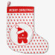 Cute Funny Red Jultomten Hat Mönster Monogrammed Monogram Initial R, eget namn Richard, Välj Fabric och Storlek, stor Dubbla Sided Print jul Stocking för barn of all age