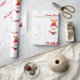 Cute, funny, and also elegant custom-name Christmas wrapping paper for kids with Santa in his red costume (holding a candy cane) and his favorite reindeer, Rudolph, behind him; with the greeting "Merry Christmas!" in cursive script / calligraphy, and a custom name. The design includes silver and off-white snowflakes and stars for a festive holiday mood.