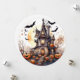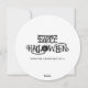 Stam vattenfärg Halloween-kort med ett hemsökt hus, roliga pumpor och fladdermus. Anpassa enkelt detta vackra Halloween-kort med din familj namn.