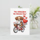 En förtjusande scen med en luddig, gyllenbrun valp som cyklar på en vintageinspirerad cykel med en liten korg av flätad korg på framsidan. Ovanför står det i lekfulla, fantasifulla bokstäver: “Paw-sitively Yours This Valentine’s Day!” Perfekt för alla som älskar hundar och en stor dos gullighet! 🐶❤️