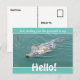 Cute Funny Seal simmade på ryggen på fiskmarknaden i Cape Cod och sa Hej Postcard.