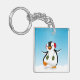 En söt vinterillustration med en klumpig penguin på bra humör med handskar och handdukar som går i snö.
