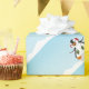 En söt vinter-illustration med en klumpig pingvin på bra humör med handskar och öron som går i snö.