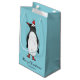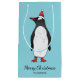 Desteis ursprungliga tecknad illustrerar en söt Gentoo-penguin med röd och vit julhatt på blå bakgrund färg. Det finns också två anpassningsbara textområden.