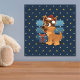 A throw poster with illustration of cute German Shepherd with a present on a starry night dark blue background, illustrated by Radka2D