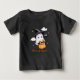 Halloween-t-shirt har ett sött spöke i en häxhatt som håller en pumpkandusch med "Bus eller godis"-text, perfekt för små till bära under skämtfestligheter.