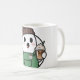 A cute coffee mug featuring an adorable cartoon ghost holding a cup of coffee.