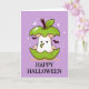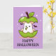 Cute Ghost in Apple with Mask Lila Halloween Kort