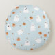 Cute Ghost och Pumpkin Blue Halloween Mönster Rund Kudde