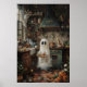 Cute Ghost Preparing To Eat Print, Floral Kitchen Poster